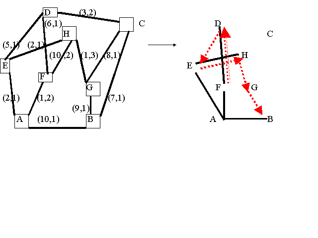 (The weights shown on the links show the cost and time delay parameters
